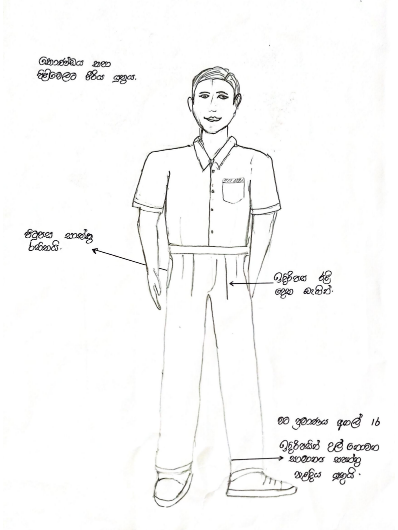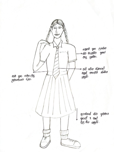- පාසල් ලාංඡනය කමිසයේ වම් පස සාක්කුවේ කෙලවර පැලදිය යුතුය.
