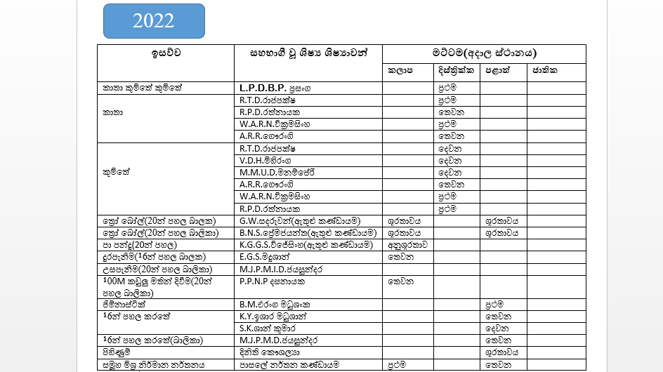 • පාසලේ නිල වර්ණ